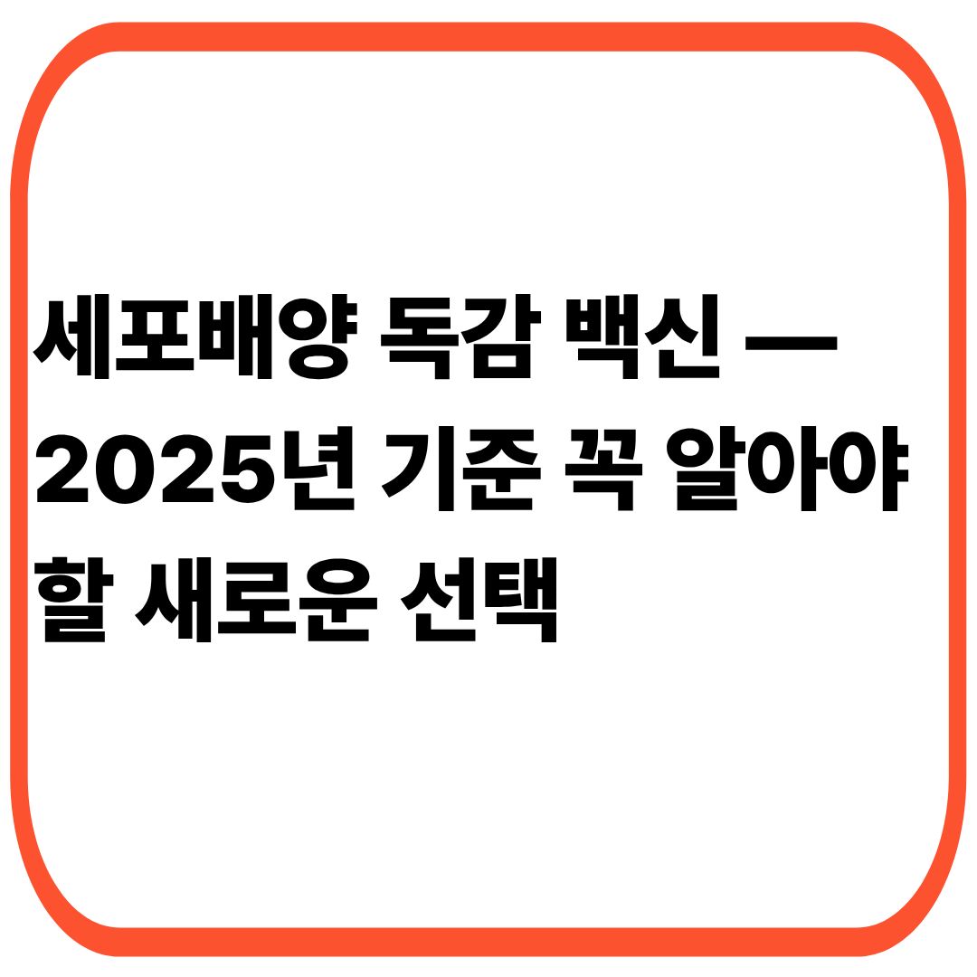세포배양 독감 백신 — 2025년 기준 꼭 알아야 할 새로운 선택